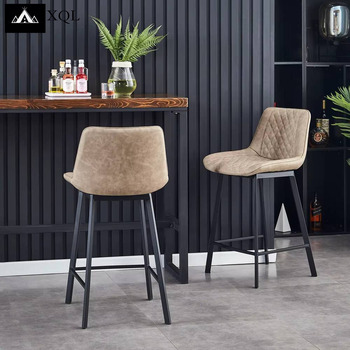 Cocina nórdica de Metal de lujo, taburetes traseros de contorno de PU de cuero moderno, sillas altas de café, mesa de Bar